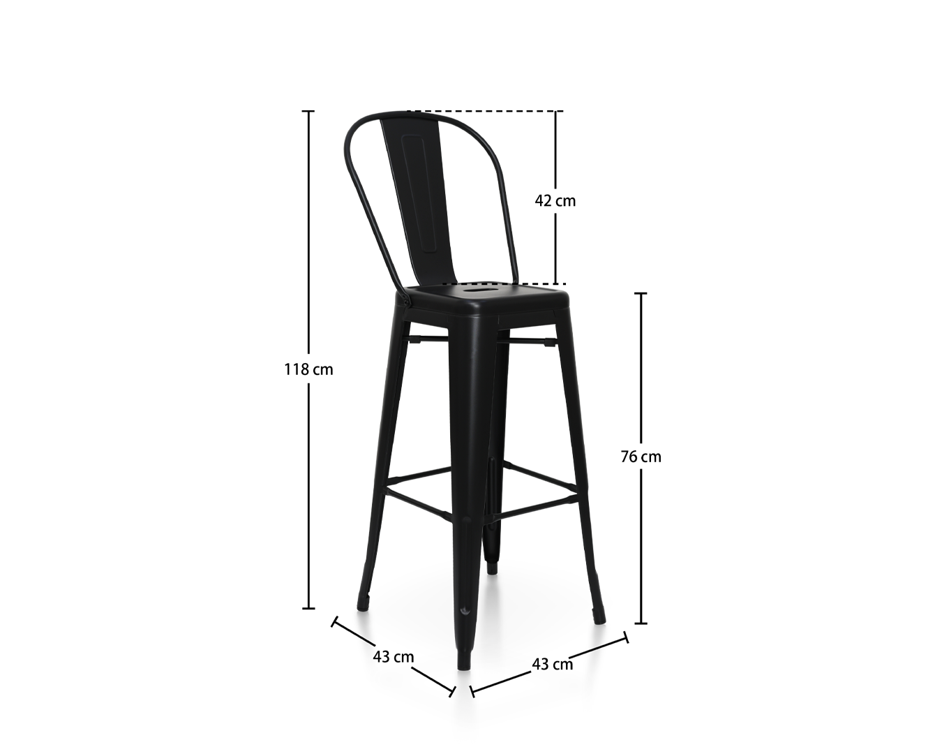 Dom / Produkty / Krzesło projektowe / Czarny metalowy stołek barowy z oparciem