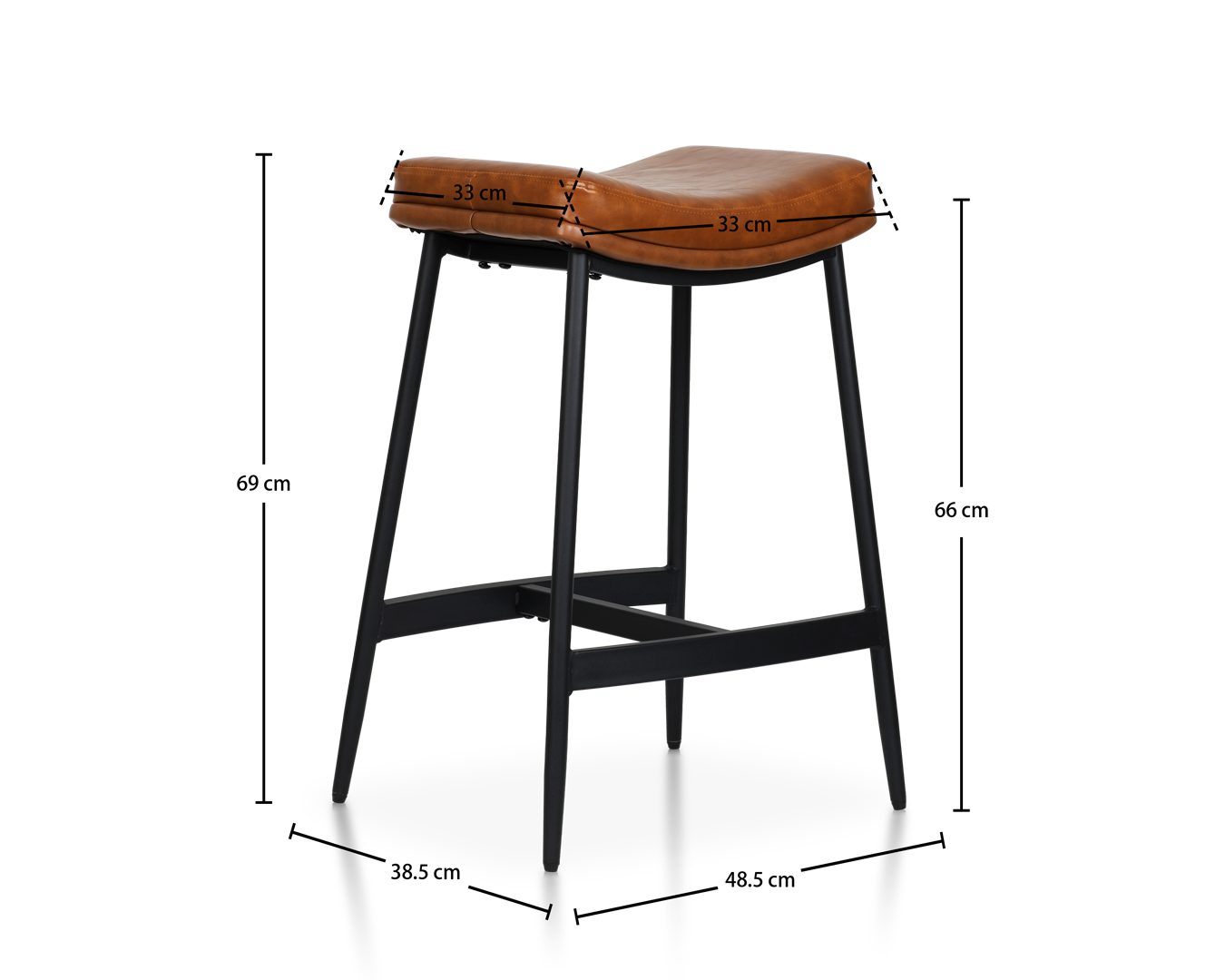 • Korowane w przemysłowym eleganckim i ponadczasowym skórze, ten stolca kieruje energię zabytkowych barów i nowoczesnych loftów. Jego siedzenie w kształcie siodła wywołuje komfort dobrze znoszonego skórzanego fotela.
