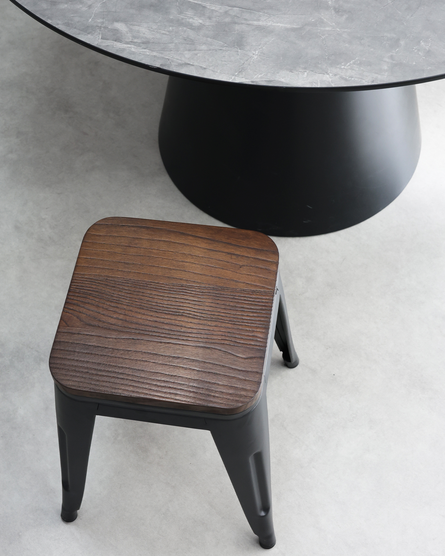 • Ostronnie zawierające mocną metalową ramę o grubości 1 mm, pokryta proszkiem dla dodatkowej trwałości, krzesła łączą solidne, eleganckie metal z naturalnym pięknem drewnianego siedzenia.