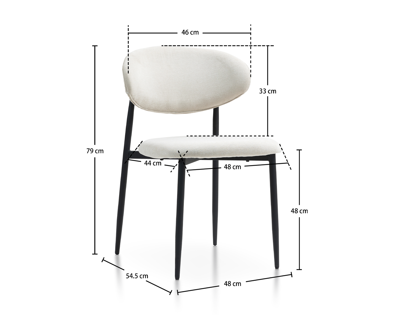 • Jego projekt płynnie łączy klasyczną elegancję z nowoczesną prostotą. Siedzenie i oparcie są tapicerowane luksusowym beżowym materiałem, zapewniając ciepły i zachęcający wygląd. Obsługiwane przez elegancką black metalową ramę, krzesło emanuje poczuciem wytrzymałości i trwałości. Oparcie jest zaprojektowane z delikatną krzywą, oferując niezrównany komfort i wsparcie.