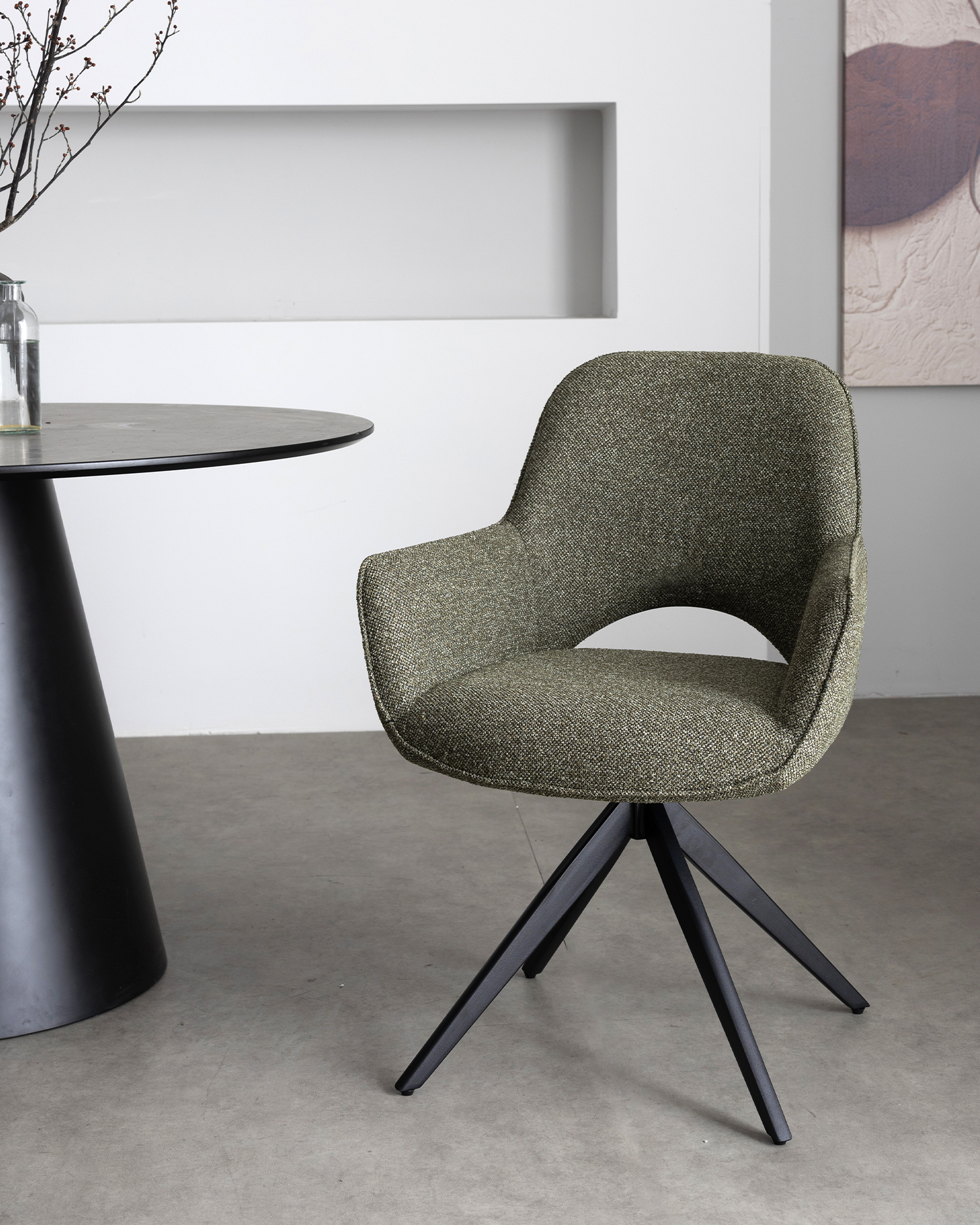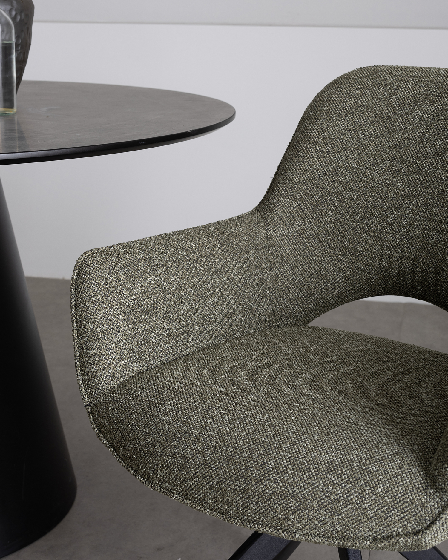 • Bezproblemowe przejście z oparcia do podłokietników naśladuje gładkie kontury liści i kamieni, tworząc harmonijne i wygodne wrażenia z siedzenia.