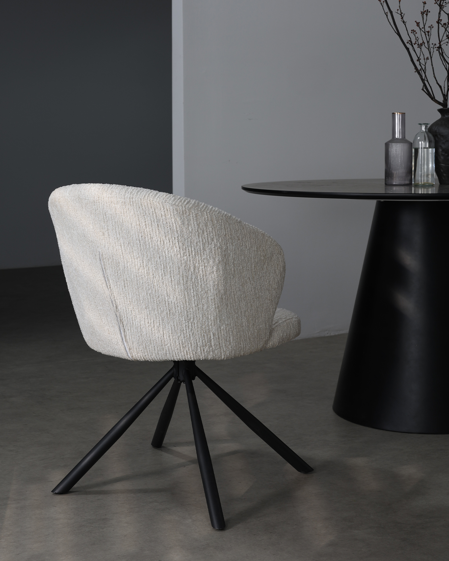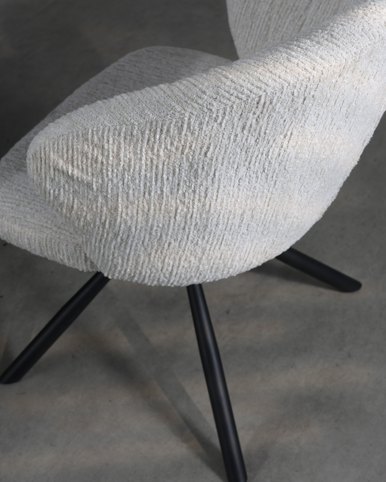 • Zaprojektowany z naciskiem zarówno na estetykę, jak i ergonomię, ma kremową, teksturowaną tapicerkę, która dodaje odrobiny wyrafinowania do każdego pomieszczenia. Zakrzywiony oparcie krzesła i duża część wypoczynkowa zapewniają wyjątkowy komfort, a jego czarne metalowe nogi zapewniają solidne wsparcie i nowoczesny talent.