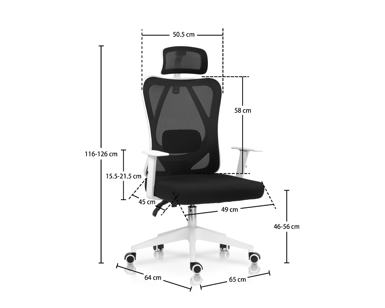 -Rozmiar: W65*D64*H116-126 cm / sh: 46-56 cm