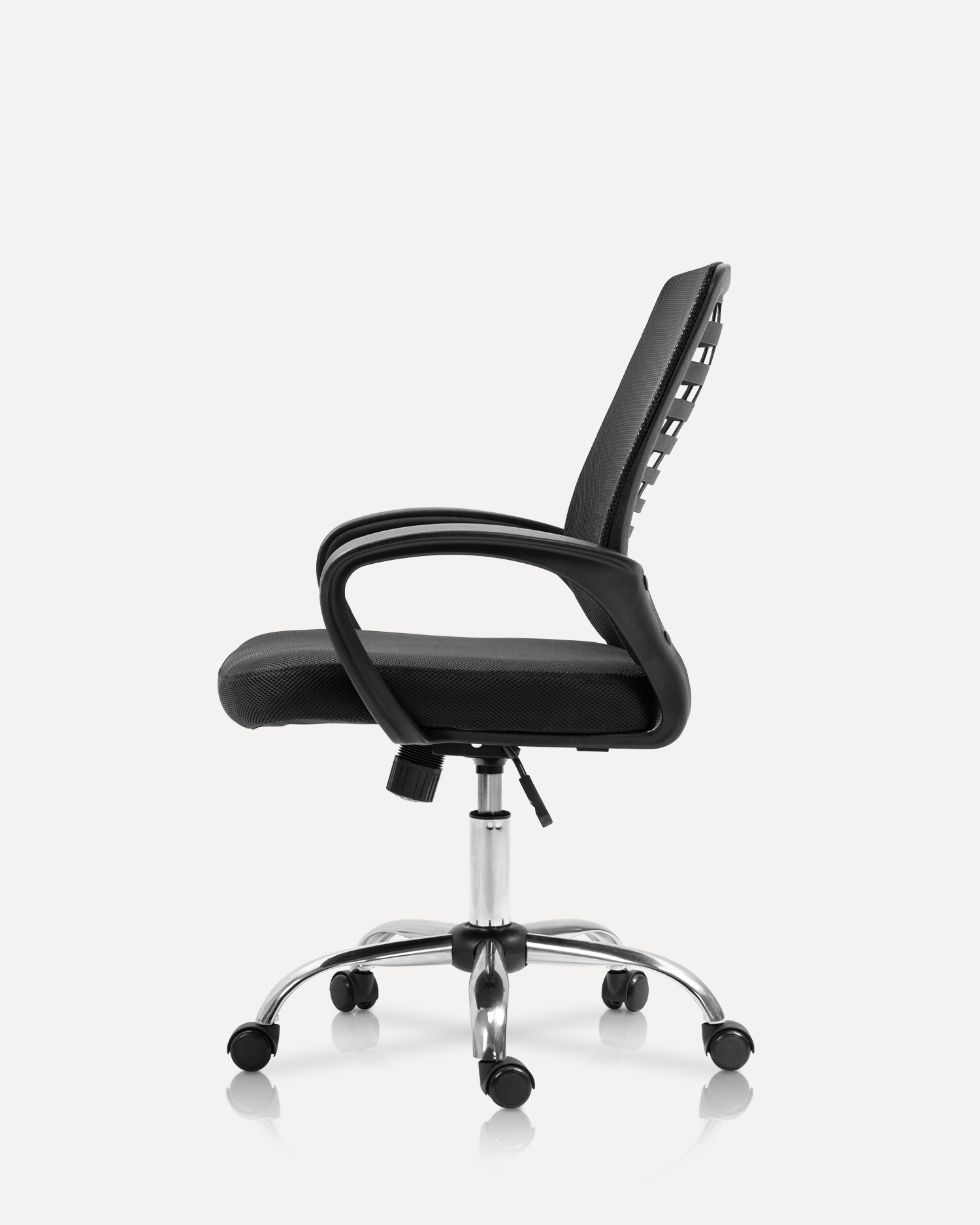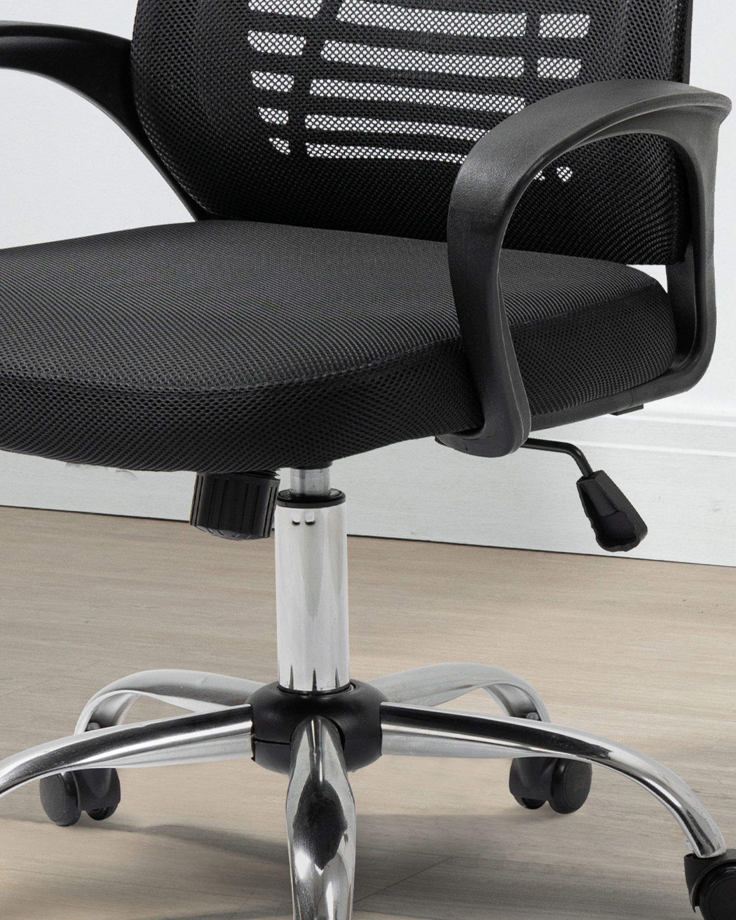 • Z oddychającym materiałem z tyłu i siedzenia będziesz komfortowo podczas długich godzin pracy. Regulowana wysokość i solidna konstrukcja zapewniają, że możesz znaleźć idealną pozycję siedzącą, zachowując wsparcie i komfort.