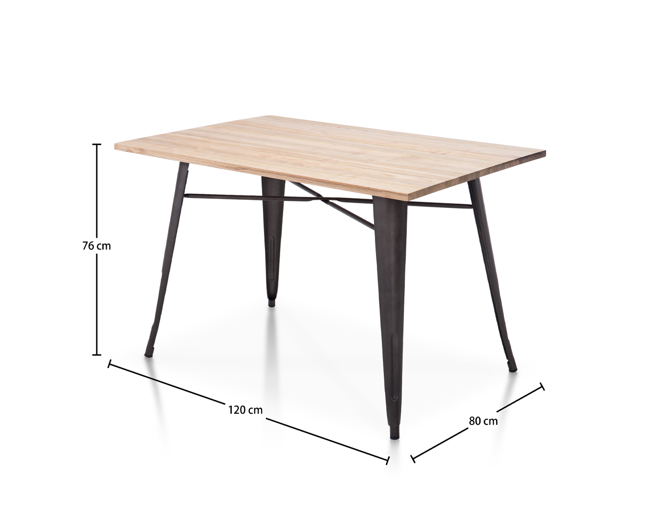 • Tabletop jest wykonany z premium Elm Wood, znanego z trwałości i bogatej konsystencji. Polerowane wykończenie podkreśla naturalne piękno drewna, dodając do każdego pomieszczenia poczucie ciepła i charakteru. Uzupełnieniem drewnianego blatu są solidne żelazne nogi, wykończone matowym czarnym kolorem, który dodaje nowoczesnego i przemysłowego dotyku. Ta unikalna mieszanka materiałów zapewnia, że ​​stół może wytrzymać codzienne stosowanie przy jednoczesnym zachowaniu stylowego wyglądu.