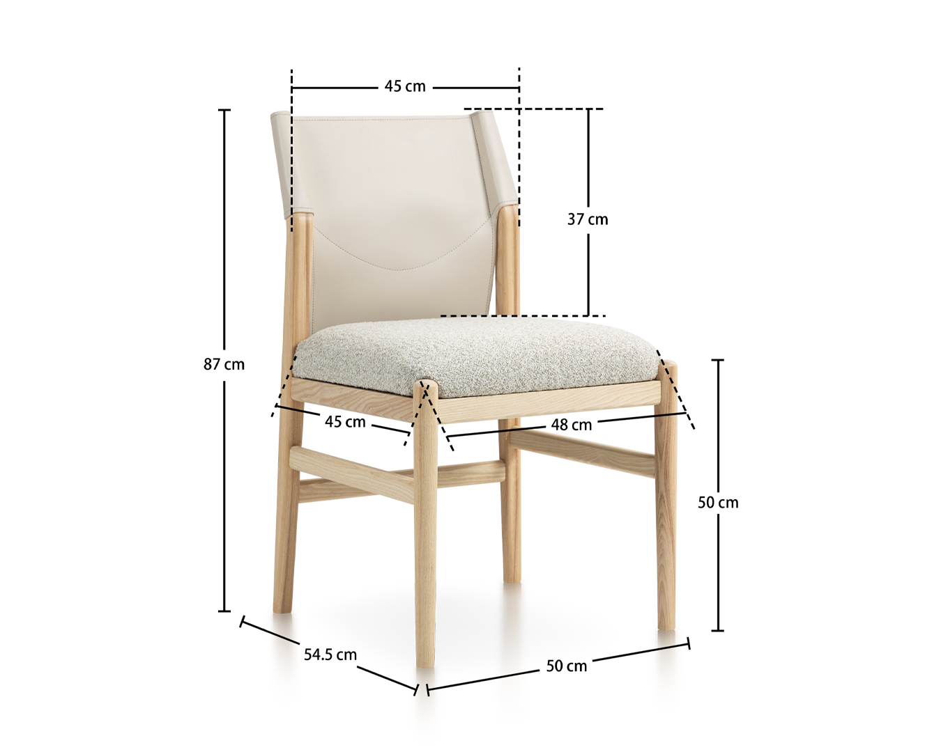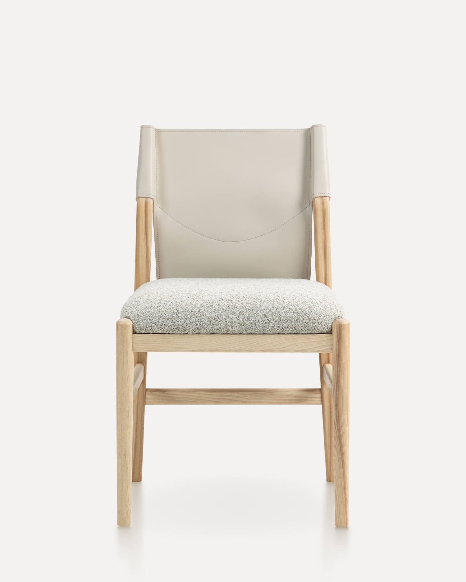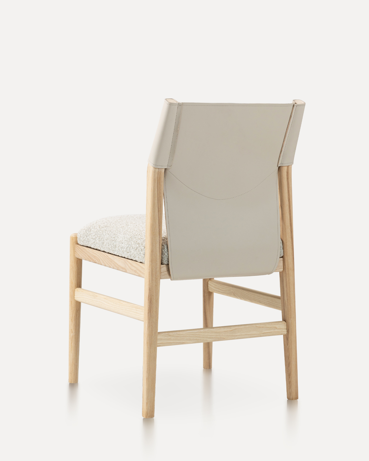 • Rama wykonana z wysokiej jakości drewna popiołu prezentuje naturalne piękno i trwałość materiału, z jego gładkim wykończeniem i subtelnymi wzorami ziarna dodającymi ciepła do każdej przestrzeni wewnętrznej. Skórzane oparcie siodła zapewnia luksusowy dotyk, oferując zarówno styl, jak i wsparcie. Jego miękka konsystencja i bogaty kolor uzupełniają ogólny projekt krzesła, co czyni go idealnym wyborem dla tych, którzy doceniają drobne kunszt.