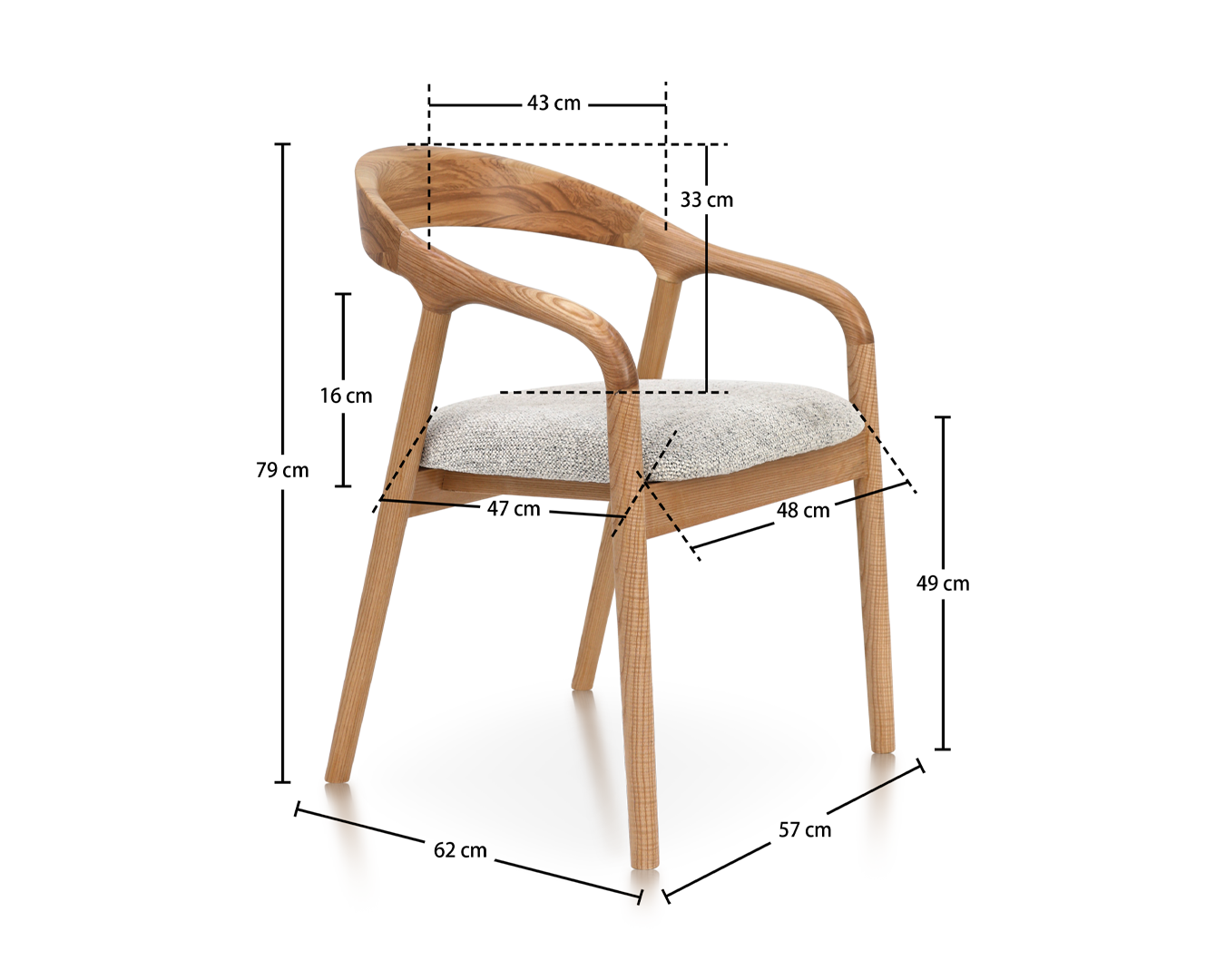 • To krzesło z pięknie zakrzywionym oparciem oferuje bardziej naturalny, ergonomiczny kształt, który przytula twoje ciało dla dodatkowego komfortu. Wykonane z wysokiej jakości drewna popiołu, które materiał zbudował, aby trwać, dodając odrobinę wyrafinowania do każdej przestrzeni.