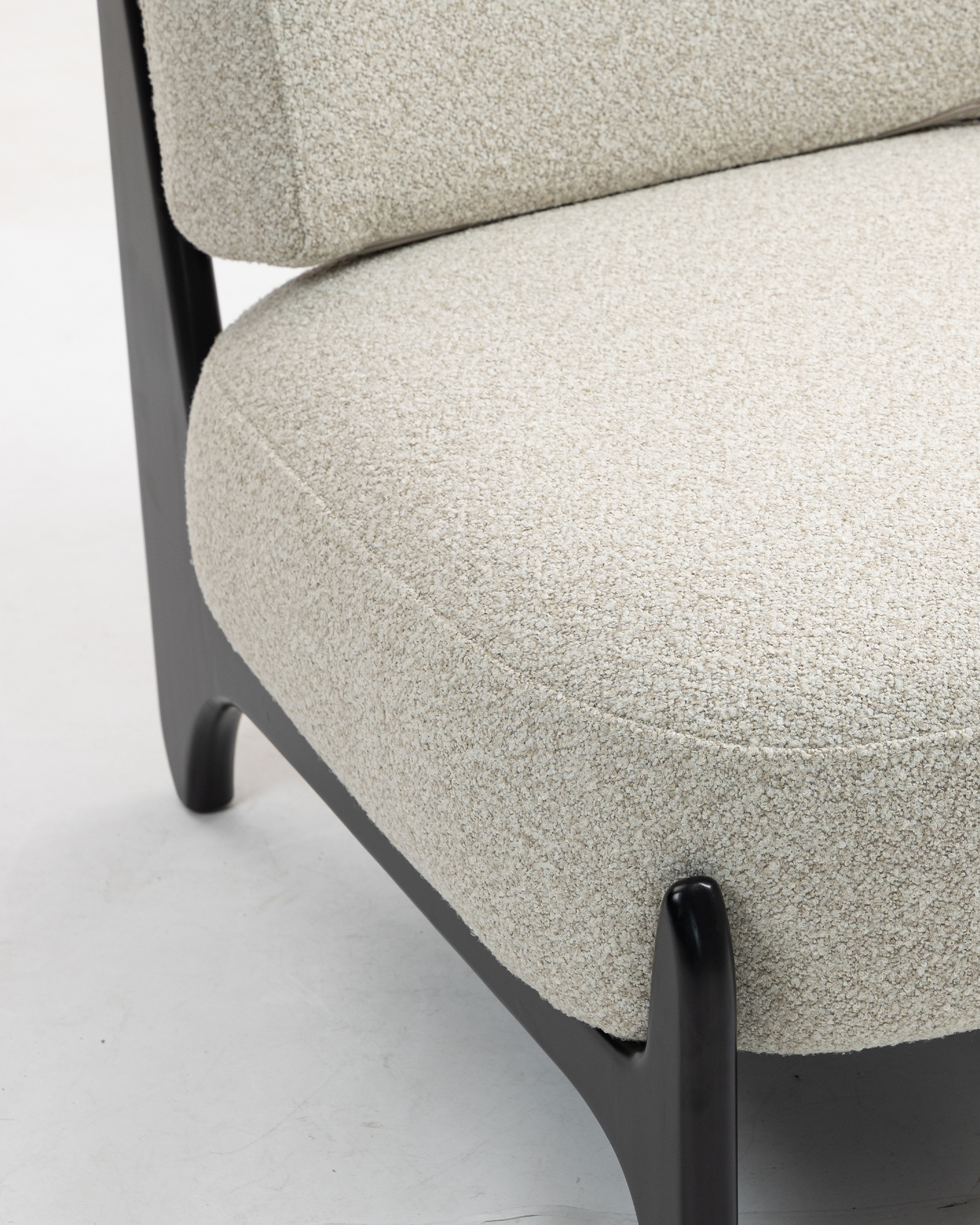 • Rama krzesła, wykonana z premium Rubberwood, ma gładkie czarne wykończenie, które emanuje wyrafinowaniem i trwałością. Obficie wyściełane siedzenie i oparcie są tapicerowane miękką, teksturowaną tkaniną, która zapewnia niezrównany komfort i wsparcie. Unikalne zakrzywione oparcie i podłokietniki oferują stylowy, ale funkcjonalny design, umożliwiający usiąść i zrelaksować się w najwyższym komforcie.